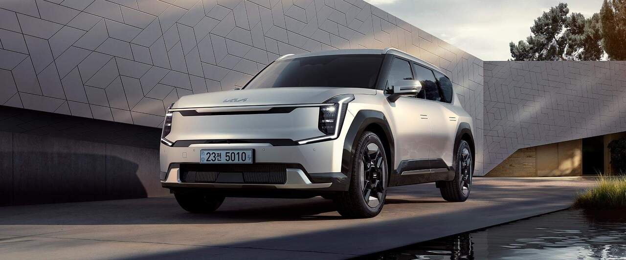 기아 EV9은 2023년 1월 19일 미국 라스베이거스에서 열린 CES 2023에서 공개된 대형 SUV 전기자동차입니다. EV9은 기아의 전기차 전용 플랫폼인 E-GMP를 기반으로 제작되어 유연하고 편안한 실내의 구성이 가능하고, 구조적 안정성을 높이는 동시에 긴 주행 거리를 위한 대용량 배터리 탑재가 가능하였습니다.