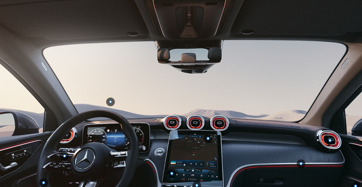 파노라믹 선루프에 장착된 더욱 슬림해진 크로스 스트럿은 공간감을 크게 향상시키고, 인체공학적으로 설계된 시트는 장시간의 주행에도 편안함을 제공합니다. 또한, 기본으로 제공되는 공기 청정 패키지와 최대 64가지 색상의 앰비언트 라이트가 조화를 이루어 개인적인 럭셔리 감성 공간을 만들어냅니다. 두 개의 대형 디스플레이와 풀 스크린 내비게이션을 기본으로 갖춘 최신 MBUX 인포테인먼트 시스템은 혁신적인 디지털 경험을 제공합니다.
