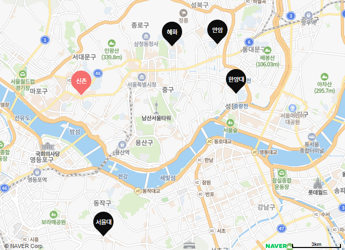 위치 : 신촌, 안암, 한양대, 서울대, 혜화
