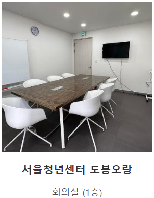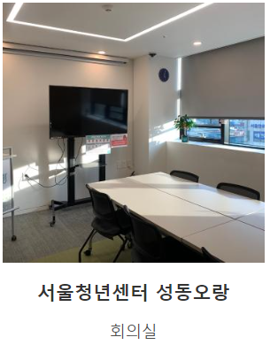 이러한 서울청년센터 오랑은 회의실 및 스튜디오 등을 갖추고 있어 이를 필요로 하는 청년들에게 무료로 대관하고 있습니다.