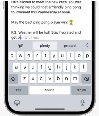 스페이스 바를 탭하는 것만으로도 단어의 나머지 부분을 자동으로 완성할 수 있게 되었고, 심지어는 전체 문장을 자동으로 완성할 수도 있습니다. 이로 인해 텍스트 입력 속도가 크게 향상되었습니다.
