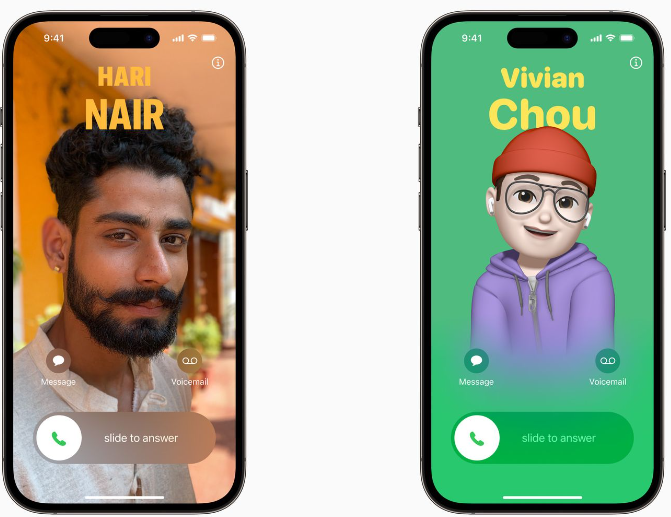 iOS 17의 전화 앱에는 Contact Posters라는 새로운 기능이 추가되어 전화를 할 때 사람들이 볼 수 있는 화면을 사용자화 할 수 있게 되었습니다. 또한 Live Voicemail을 통해 누군가가 음성 메시지를 남길 때 Lock Screen에서 실시간으로 메시지의 내용을 확인할 수 있습니다.