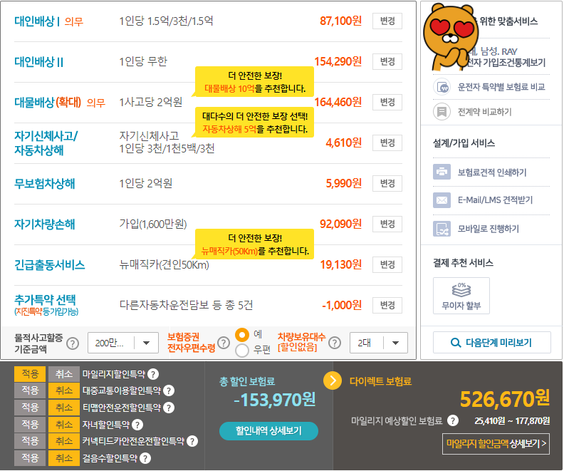 레이 30대 초반 1년 자동차 보험료 대략 52.6만원, 한달 4만4천원입니다.