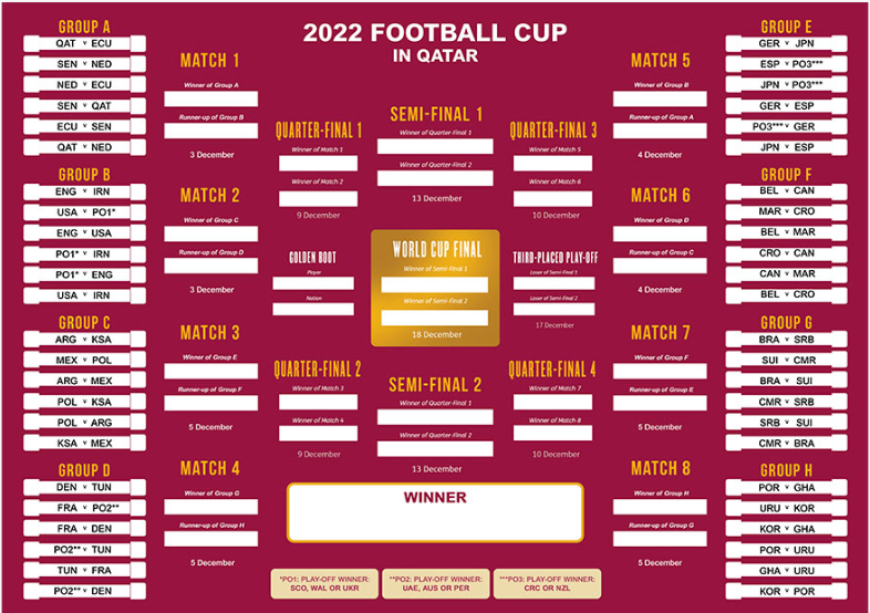 조별리그는 첫 이틀을 제외하고 매일 4경기씩 치러집니다.32개 팀은 12월 3일 16강전(8강전)부터 녹아웃이 시작되기 전까지 조별리그에서 각각 3경기를 치릅니다.