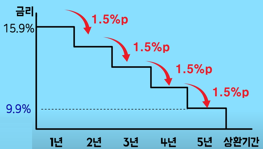 만약 5년 약정을 선택하고 잘 갚아나간다면 매년 1.5%p씩 금리 하향