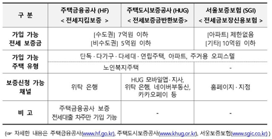 ※ 한국주택금융공사 : 보증료율이 낮으나, 한국주택금융공사가 보증하는 전세대출을 이용하는 차주만 이용 가능