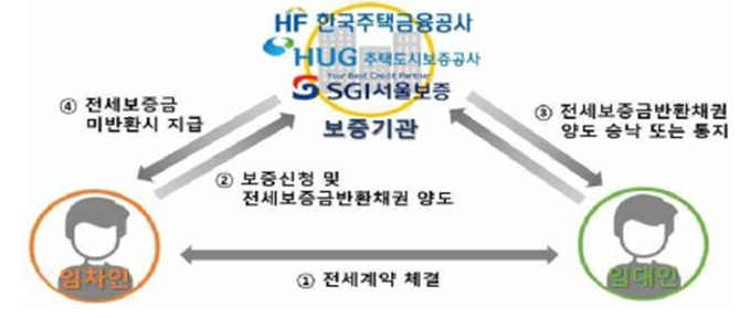 내 전재산과도 같은 전세보증금을 돌려받지 못할 위험으로부터 보호받기 위해 주택금융공사, 주택도시보증공사, 서울보증보험에서는 "전세보증금 반환보증" 상품을 판매하고 있습니다. 따라서 전세 임차인으로서 전세계약 종료시점에 전세보증금을 온전히 돌려받을 수 있을지 걱정된다면 반환보증을 꼭 고려하세요