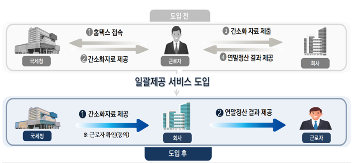 2021년 까지는 근로자가 국세청의 홈택스에 들어가서 일일이 본인의 간소화 자료를 발급받아서 회사에 제출해야 했었으나, 2022년 부터는 근로자가 사전에 신청만 한다면 국세청에서 본인의 회사에 관련 자료를 직접 제공하게 됩니다.