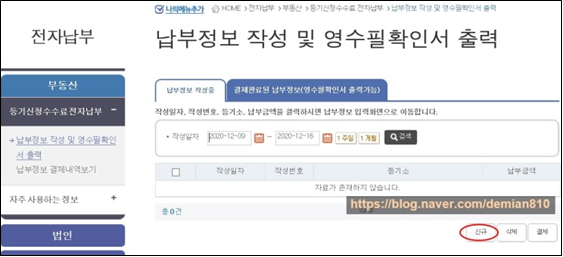 결제만 했다고 끝은 아니죠. 우리는 항상 돈을 냈으면 그 증빙서류를 발급 받아야 합니다. 이를 위해서 결제완료된 납부정보 탭을 클릭합니다. 그러면 내가 결제했던 항목이 아래 나타납니다. 그 중에서 출력할 항목을 선택해서 출력하면 됩니다.